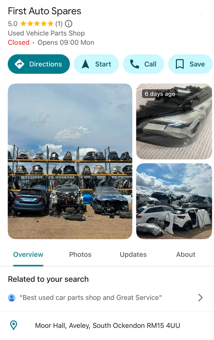 Get in touch with us at First Auto Spares in Moor Hall, Aveley, for all your used car part needs. We're here to help—contact us today!