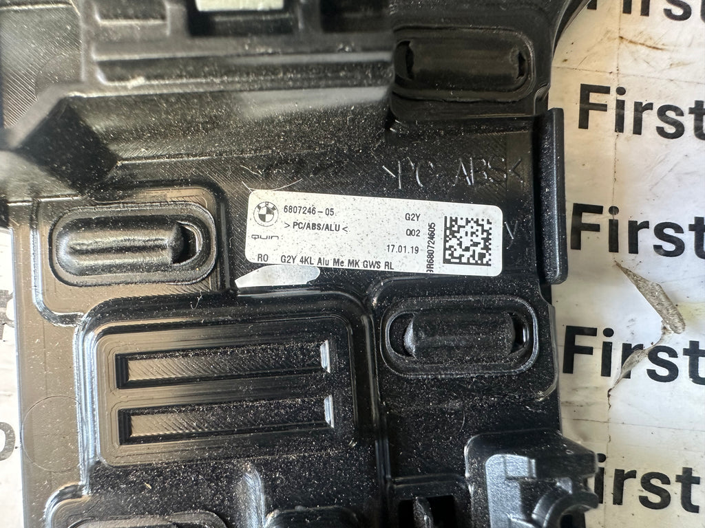 This centre console surround trim is a genuine interior part designed for the 2020 BMW 3 Series G20 model. It fits securely around the centre console area, enhancing the interior appearance and maintaining the original factory design. Ideal for replacing a damaged or worn trim, this part has been thoroughly inspected and is in excellent working condition.