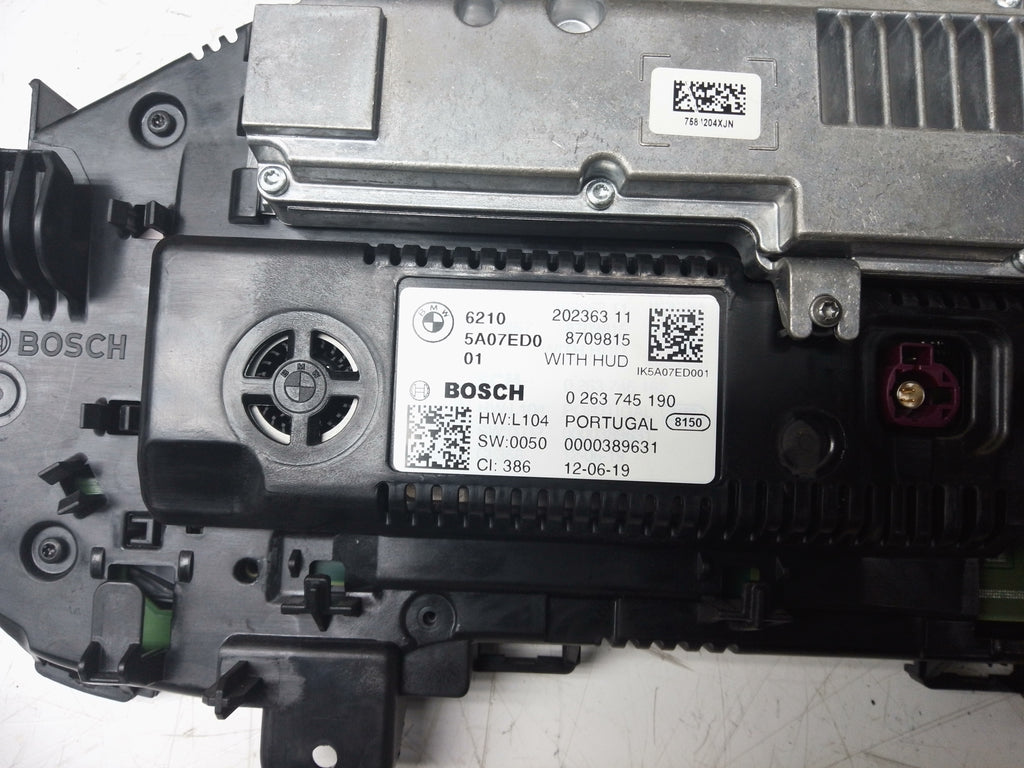 This instrument cluster speedometer is a genuine component designed for compatible BMW models. It features part numbers 5A07ED0 and 202363 11, ensuring reliable compatibility and performance. The unit has been professionally removed, thoroughly inspected, and is in excellent working condition, ready for installation.