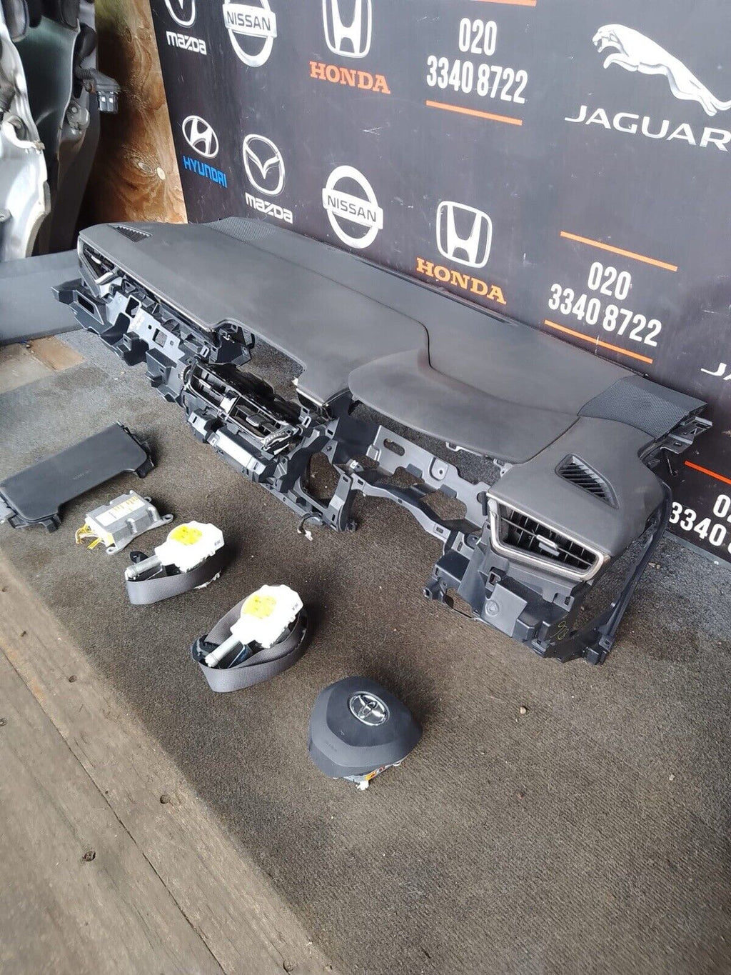 This is a complete genuine Toyota airbag kit, safely removed from a 2022 Toyota Corolla C1H 1.8 Hybrid Mk12 Estate (5-door). The kit includes essential airbag safety components designed to restore full passenger protection after deployment.